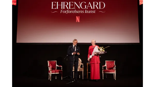 Last week, the SF Studios produced Danish Netflix feature film Ehrengard: The Art of Seduction had its premiere at Moltke’s Palace in Copenhagen with the cast, crew and Queen Margrethe II of Denmark attending. The Queen has created set design and costumes for the film and Academy Award, Gloden Globe and two-time Palme d'Or winner Bille August is directing. The film is based on the book Ehrengard by Karen Blixen and a script written by Anders August. SF Studios is producing the film with producer Marcella Dichmann. Ehrengard: The Art Of Seduction premieres today on September 14 on Netflix.